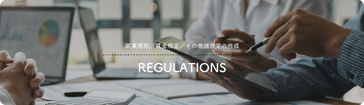 賃金規定、パートタイマー・アルバイト規定、育児介護休業規定、退職金規定等必要に応じて作成いたします。また、既存の付属規定も新しく作成した就業規則に対応させるよう修正いたします。